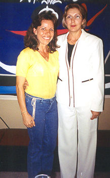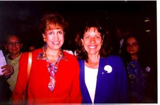 Regina e Maria Luiza Granado, Presidente da FEBEM, no lançamento do livro "Carta para minha mãe" em 12.05.02.