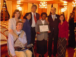 Helvio Mation - assessor da presidência da Prodesp, Maria Camporese - assistente social da Prodesp, Brígida Medina - coordenadora da Coopjovem, Julio Semeghini - deputado federal, Maria Antonieta Nascimento - presidente da Coopjovem, Newton Paulo Freire Filho - presidente da Prodesp e Regina Sudaia - funcionária da Prodesp e diretora da Coopjovem, durante entrega do Prêmio Cidadania ao presidente da Prodesp, promovido pelo Anuário Informática Hoje, em 08/10/2001. |